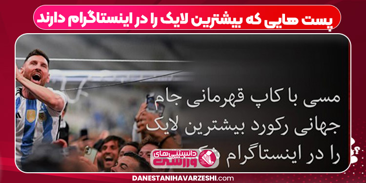 عکس مسی بعد از پیروزی در جام جهانی ۲۰۲۲ با بیش از ۷۴ میلیون لایک، به معروفترین پست تاریخ تبدیل شد. این تصویر خوشحالی و یک لحظه تاریخی را به دنیا معرفی کرد. گستردگی آن باعث بروز احساسات میلیونها نفر شد. این رکورد هنوز هم غیرقابل دسترسی به نظر میرسد